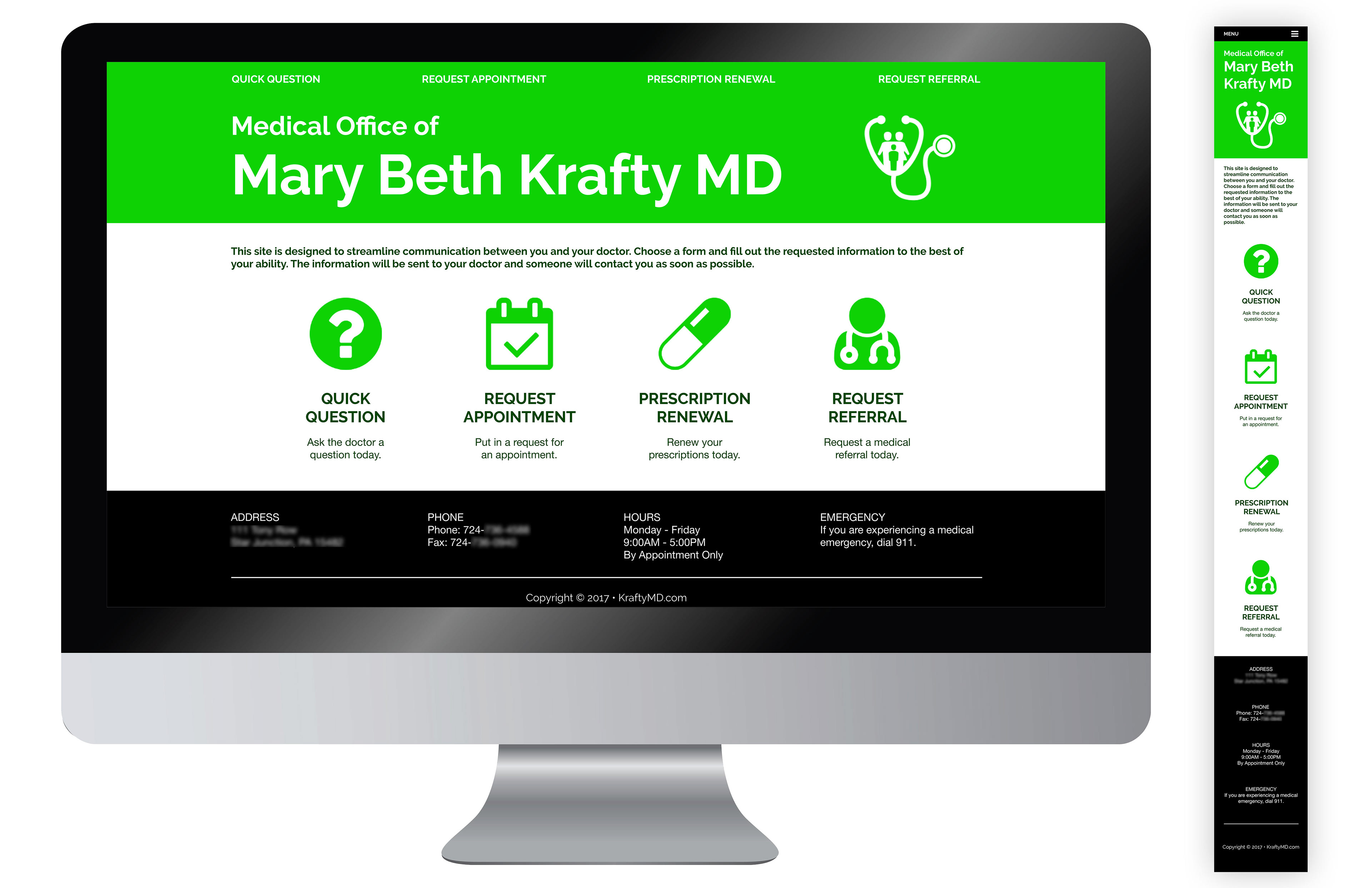 Krafty MD website mock-up (full and responsive).